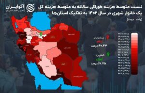 بررسی‌ها نشان می‌دهد تنها ۷ استان نسبت هزینه خوراکی به هزینه کل کمتری نسبت به میانگین کشور داشته‌اند که عمدتا استان‌های بزرگ و پردرآمد کشور هستند.