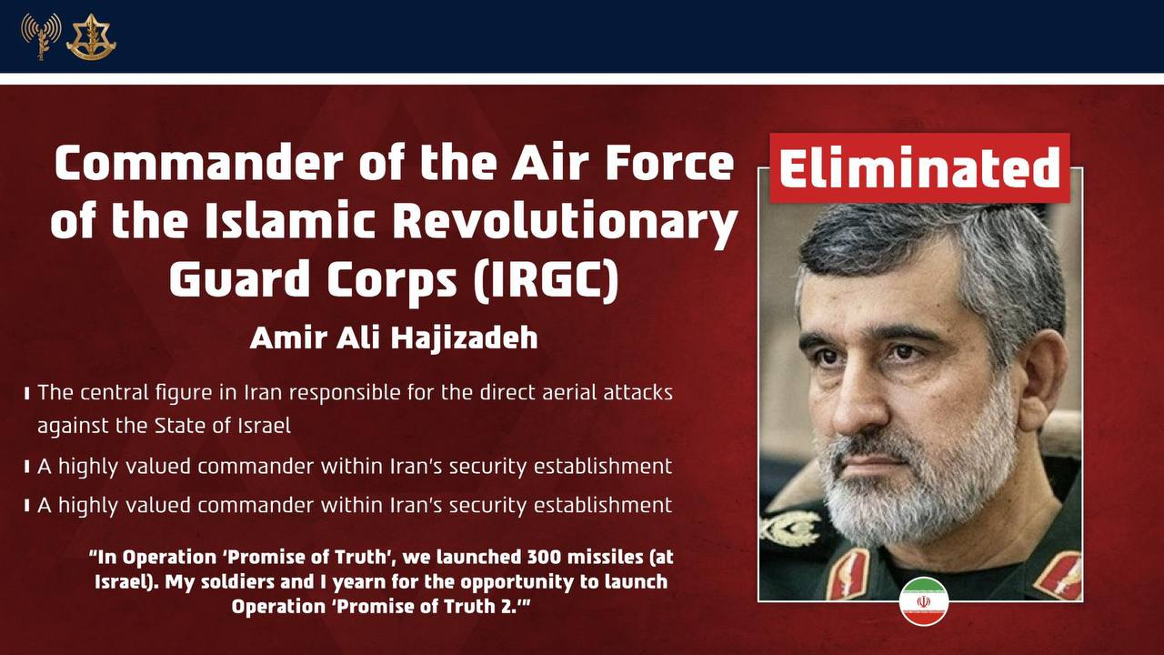 در پی این شناسایی، جنگنده‌های نیروی هوایی اسرائیل (IAF) اقدام به هدف قرار دادن این مرکز فرماندهی کردند. در این حمله، سردار امیرعلی حاجی‌زاده، فرمانده نیروی هوافضای سپاه، به همراه تعدادی از فرماندهان ارشد کشته شد.