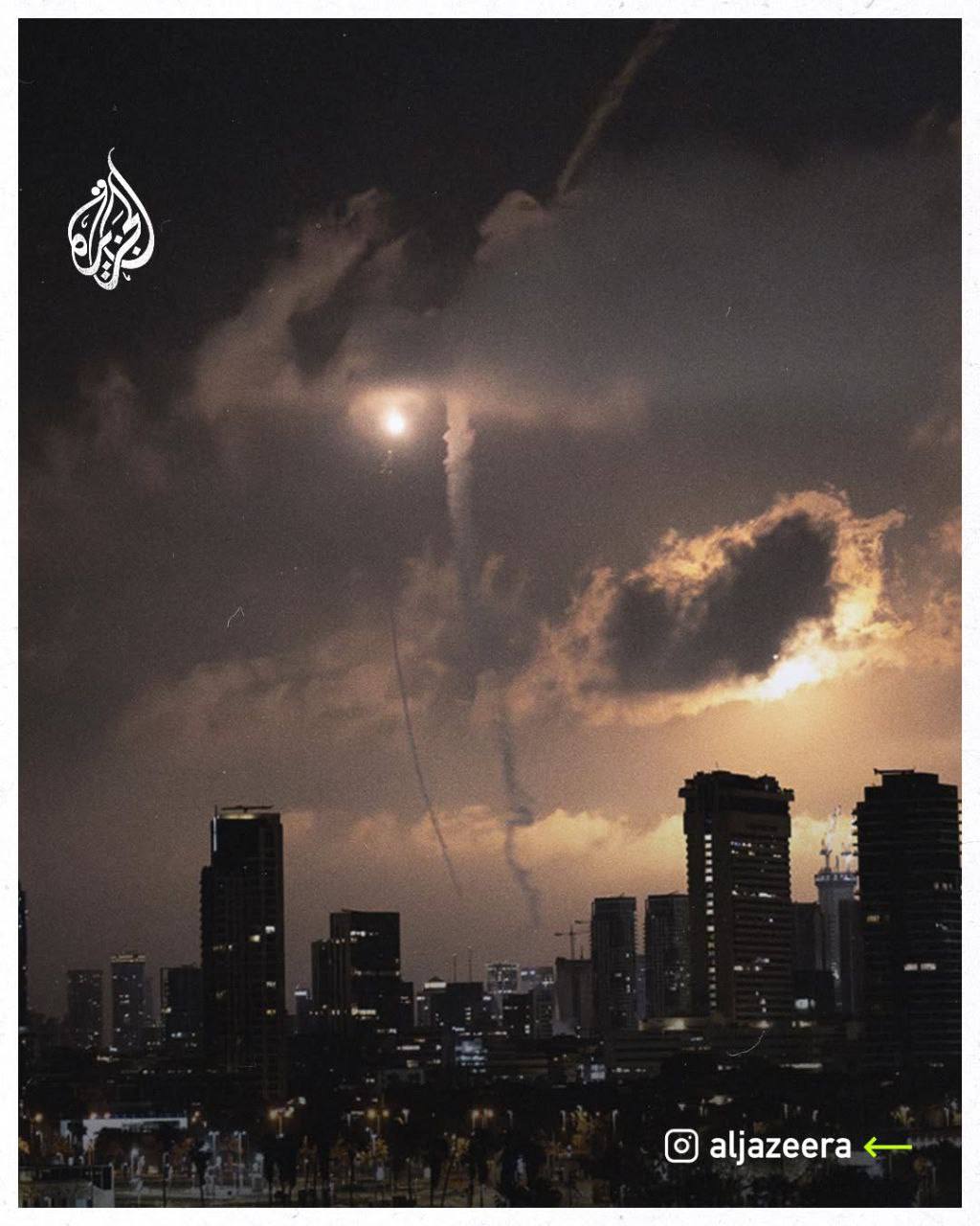 شبکه الجزیره تصاویری از پرتاب موشک‌های سجیل در آسمان تل‌آویو منتشر کرده است.